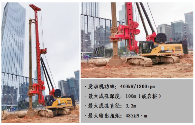 我司承接的前海綜合交通樞紐基坑支護(hù)及地基加固工程,最大樁直徑達(dá)3.2米,施工難度極大。投入使用的寶峨BG55型旋挖鉆機(jī)以超強(qiáng)的入巖能力和穩(wěn)定可靠的技術(shù)性能,有效解決了項(xiàng)目大直徑成孔、灌注樁超深入巖等施工難題。除此之外,我司在深圳國際會(huì)展中心及南山區(qū)重點(diǎn)民生工程中均投入使用了該設(shè)備,已成功實(shí)現(xiàn)樁徑2米、深113米的超深嵌巖樁施工,對(duì)加快深圳特區(qū)重難點(diǎn)工程項(xiàng)目建設(shè)功不可沒。